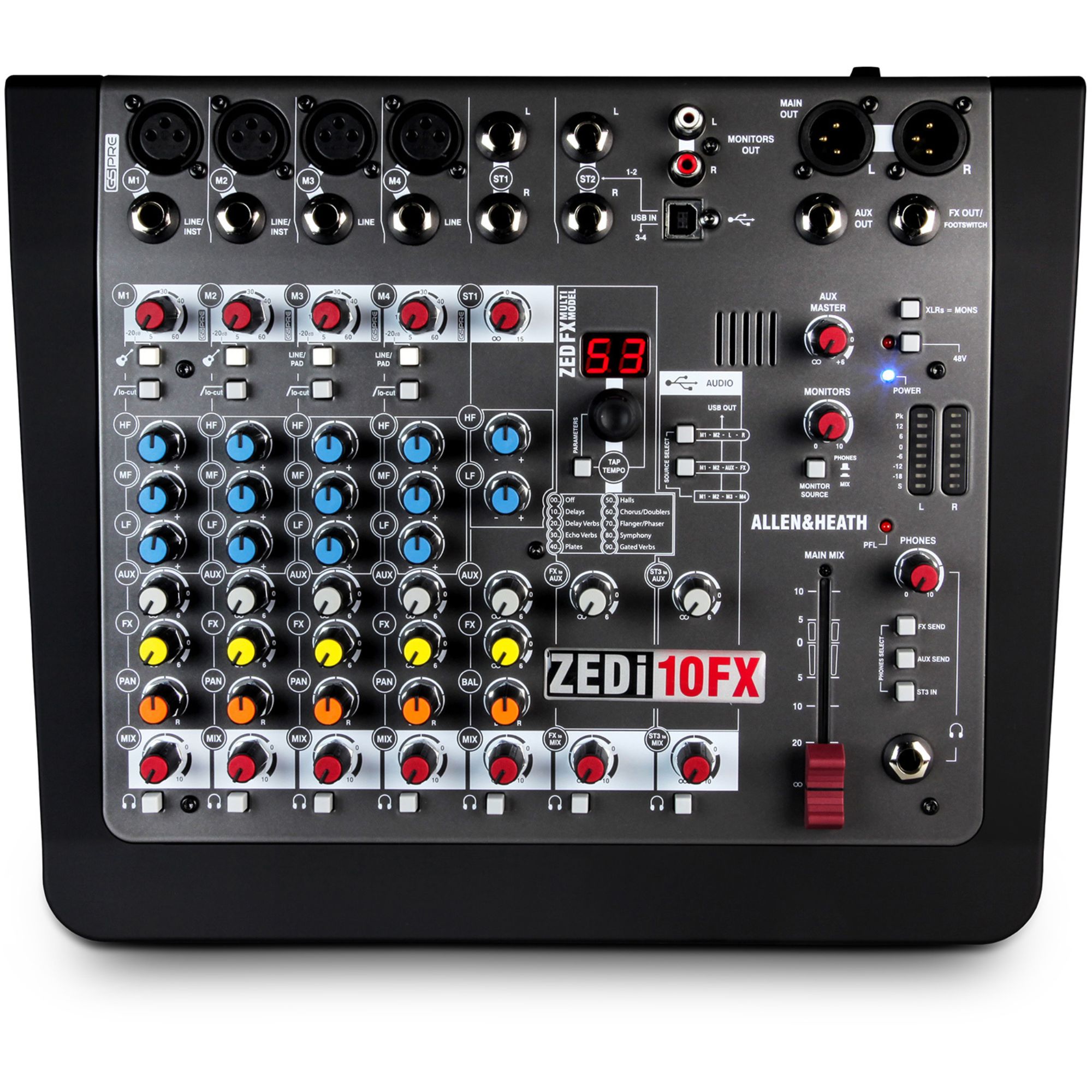 Chitaristii vor fi multumiti sa stie ca ZEDi-10FX vine cu o pereche de intrari DI de mare impedanta, ce permit conectarea directa in mixer a chitarelor, fara deranjul si costul unui DI Box separat.